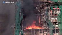 Espectacular incendio de un rascacielos en construcción en Hong Kong