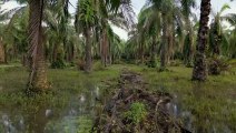 01:14A dirt track leads to a clearing dotted with large, industrial-looking buildings.
