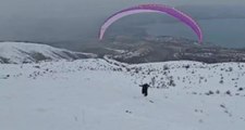 Göl manzarası eşliğinde yamaç paraşütü! Hazarbaba Dağı’ndan renkli görüntüler