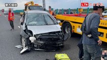 高雄建國高速公路便道4車連環撞 3傷送醫