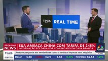 00:41ameaçando importarifas adicionais de 100% sobre as importações da China antes das duas superpotências econômicas chegarem a um acordo.
