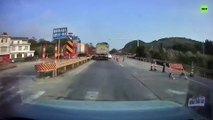 ¡Salieron ilesas! Brutal choque con un camión en plena carretera en reparación (VIDEO)