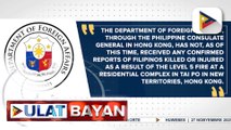 DFA, kinumpirma na walang Pilipinong nasawi sa sunog sa Hong Kong