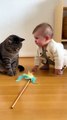 Baby Trying to Teach a Cat #ai #cute #kitten #cat #viralreels #love #baby