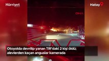 Otoyolda devrilip yanan TIR’daki 2 kişi öldü; alevlerden kaçan anguslar kamerada