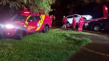 Carro fica parcialmente submerso em alagamento e mobiliza resgate em Cascavel