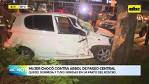 En estas condiciones quedó la camioneta Peugeot 2008 tras perder el control e impactar en forma violenta contra un árbol en el paseo central de la Avenida Guido Boggiani casi Capitán Nudelman de Asunción. El conductor identificado como Ricardo Estigarribia Irala 23 años y otros tres ocupantes sufrieron golpes leves, pero igual fueron llevados hasta un centro asistencial.