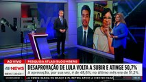 A desaprovação do presidente Lula (PT) voltou a subir, segundo a pesquisa Atlas Intel/Bloomberg, divulgada nesta terça-feira (02). São 50,7% que desaprovam o petista na pesquisa feita em novembro, mostrando um aumento de 2,6 pontos percentuais, se comparado ao levantamento de outubro. Enquanto isso, a aprovação é de 48,6%. Foram ouvidas 5.510 pessoas entre os dias 22 e 27 de novembro, com margem de erro de um ponto percentual, para mais ou para menos. Comentaristas: José Maria Trindade e Deysi Cioccari