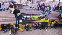 احتجاجات المزارعين في أوروبا: مزارعو النمسا يغضبون ويضعون نعالهم أمام البرلمان "دعوا المزارع يعيش"