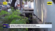 La avenida Del Agrónomo en San Lorenzo, a metros de su intersección con la avenida Avelino Martínez, se encuentra en deplorable estado, apeligrando a peatones y automovilistas ante el mal estado del puente y de la calle, la falta de seguridad y el peligro de desborde con cada lluvia.