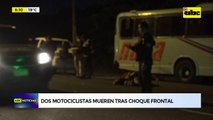 Dos motociclistas murieron tras impactar en forma violenta contra la parte trasera de un camión de gran porte sobre la Ruta Py 01 casi Primero de Marzo del barrio Achucarro de San Antonio. Según testigos, agentes de la Patrulla Caminera estaban realizando controles y a raíz de esa actividad quedaron dos camiones en ruta y allí chocaron los motociclistas. Cinco agentes están aprehendidos.