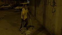 Rafa desplaza las garrafas de gua a patadas por la calle