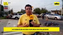 00:00Nos trasladamos hasta la zona de la ciudad de Itagua, en donde lastimosamente ayer se daba un caso de accidente fatal y vamos a ver estas imágenes terribles realmente en donde dos personas terminan perdiendo la vida,