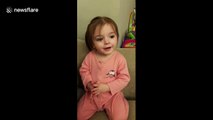 Angelic toddler does magic trick with pacifier