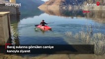 Baraj sularına gömülen camiye kanoyla ziyaret