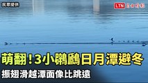 萌翻!3小鸊鷉日月潭避冬 振翅滑越潭面像比跳遠(民眾提供)