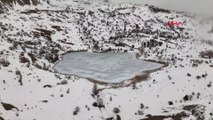 Buz tutan Ardos gölü dron kamerasıyla görüntülendi
