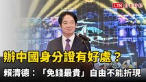 辦中國身分證有好處? 賴清德示警:「免錢最貴」自由不能折現