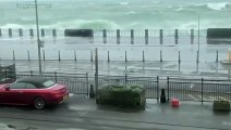 Waves crash over Laxey Promenade amid Storm Bram