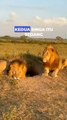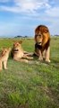 "A warthog pretends to be dead, a pair of lions approach it"