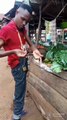 Funny clips a hen and baby taking feed from hand baby