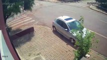 Câmera de segurança flagra Peugeot em chamas descendo rua desgovernado em Cascavel