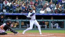 Albies hits it out to left center slicing over his pillar.