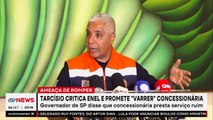 O governador de São Paulo, Tarcísio de Freitas (Republicanos), voltou a criticar a Enel pela demora em restabelecer a energia elétrica. Tarcísio disse que não é possível ficar refém do serviço e criticou a lentidão para atender mais de um milhão de paulistas sem luz. Reportagem: Misael Mainetti