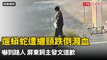 遛蟒蛇遭纏頸跌倒濺血嚇到路人 屏東飼主發文道歉