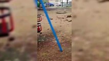 Parque infantil impactado por un misil iraní en Petah Tikva, Israel