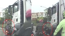 骑士停垃圾车视线盲点被撞倒