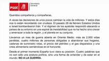 Sánchez escribe a la militancia del PSOE para defender su respuesta ante la guerra
