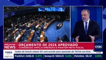 00:00O Congresso Nacional aprovou o orçamento de 2026, prevendo um superávit primário de R$ 34,5 bilhões no próximo ano.