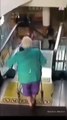 velha caindo da escada rolante
