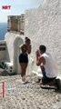 💍 Él planeó la pedida perfecta en Santorini, el lugar ideal, el momento soñado… Pero dos turistas decidieron colarse comiendo chocolate y se robaron el show 🤦♂️🍫 “Los tres primeros segundos fueron mágicos”, lamentó el novio.