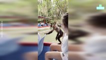 Ella Hodgson from Perth, Australia, filmed the magical moment her Great Dane began playing with a baby dolphin swimming alongside the canal.