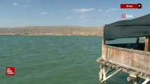 Van Gölü’nde sular çekildi, su altı peribacaları ortaya çıktı