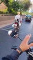 Ce motard n'a pas de bras...
