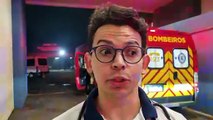Caminhão dos bombeiros é usado para resgatar gato que caiu do terceiro para o segundo andar de prédio no Parque São Paulo