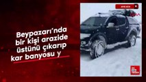 Ankara Beypazarı’nda bir kişi arazide üstünü çıkarıp kar banyosu yaptı