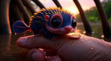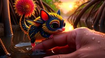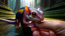 Deep on a rainforest floor, a tiny fantasy creature emerges from a muddy burrow. Captured in ultra-realistic POV, a gentle human whisper and offered food create a magical bond. Dripping leaves, soft light, and delicate movements make the moment feel intimate, warm, and beautifully believable like a spontaneous phone recording.