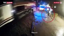 O anlar kamerada! Tır otomobile böyle dehşet yaşattı