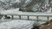 Çoruh Nehri'nin yüzeyi buz tuttu