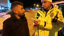 Alkollü yakalandı, araç başında içti