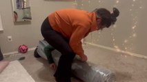 Woman experiences a hilarious mishap when mattress pops open and hits her mid-unboxing