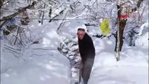 Kar kalınlığı insan boyunu aştı: Küreklerle yol açarak evlerine gidiyorlar