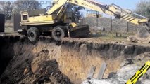 Excavator falls into collapsing sand pit