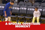 Stephen Curry’s pregame trick shot leaves Draymond Green’s son in awe