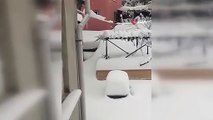 Kedilerin karda yürümeye çalıştığı anlar renkli görüntülere sahne oldu