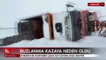 Ardahan’da kontrolden çıkan kar küreme aracı devrildi